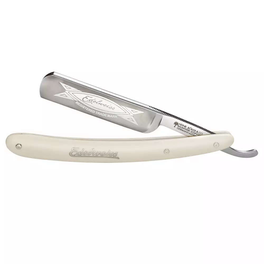 In production since the 1920’s, the Boker Edelweiss 5/8-inch Straight Razor is as elegant as it is effective. It is exceptionally easy to handle and produces excellent results.