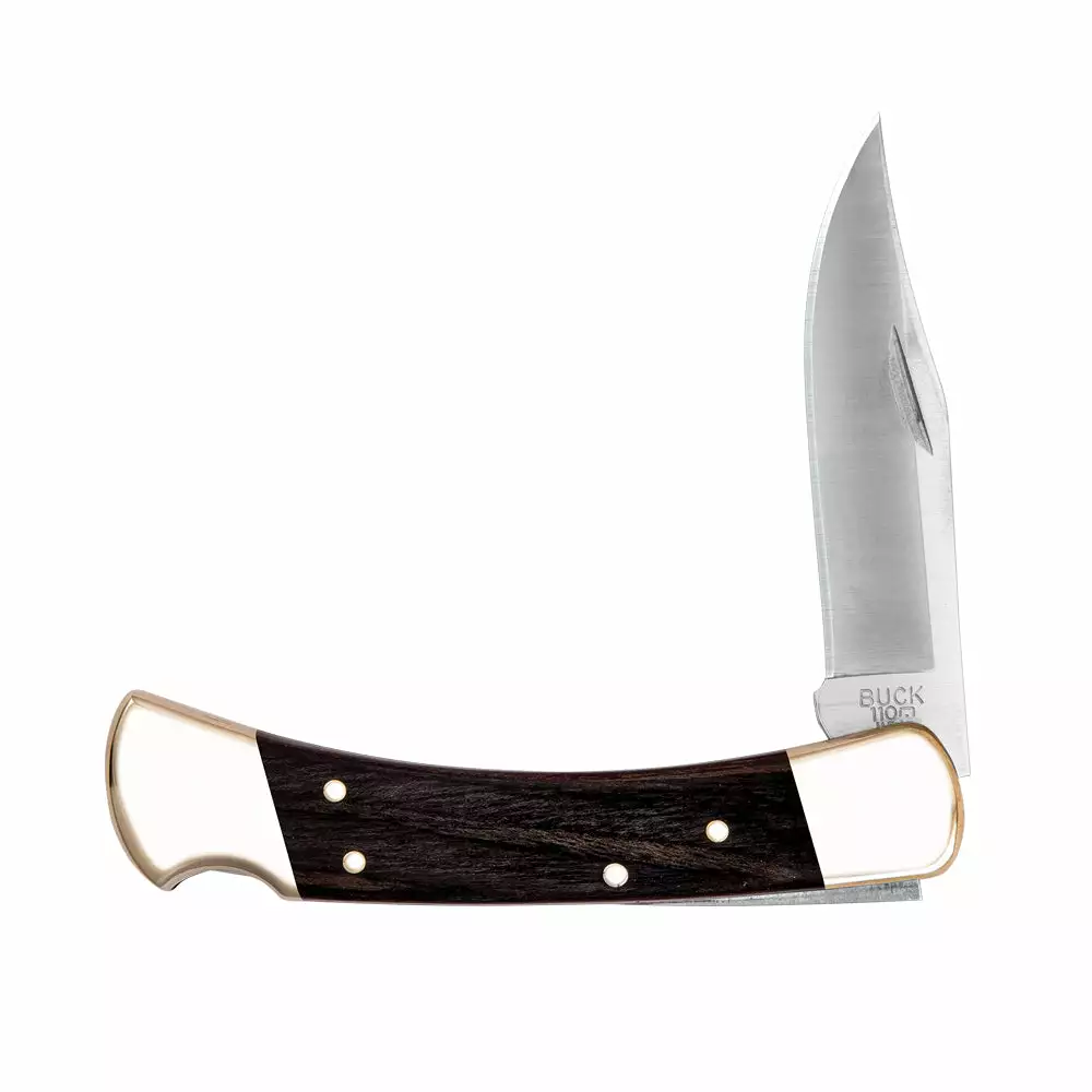 The Buck 110 Folding Hunter Knife is Buck’s bestselling knife. This often-imitated knife design has been in the Buck lineup for over 50 years, and with good reason. Designed for hunting, it is also a traditional everyday favorite featuring a razor sharp clip-point blade crafted from 420HC stainless steel, and striking genuine ebony handles with brass bolsters.