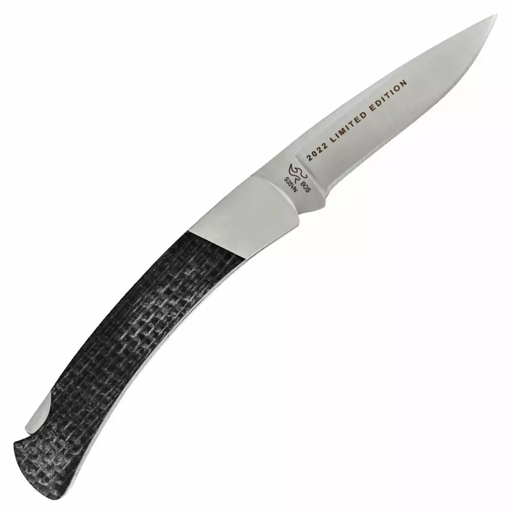 The Buck Legacy Collection 501 Squire Knife is a unique, limited edition version of the classic 501 Squire created for the year 2022. The Legacy Collection Squire has the same form factor as the standard 501, but is upgraded with S35VN steel and a Black Burlap Micarta handle with nickel silver bolsters.