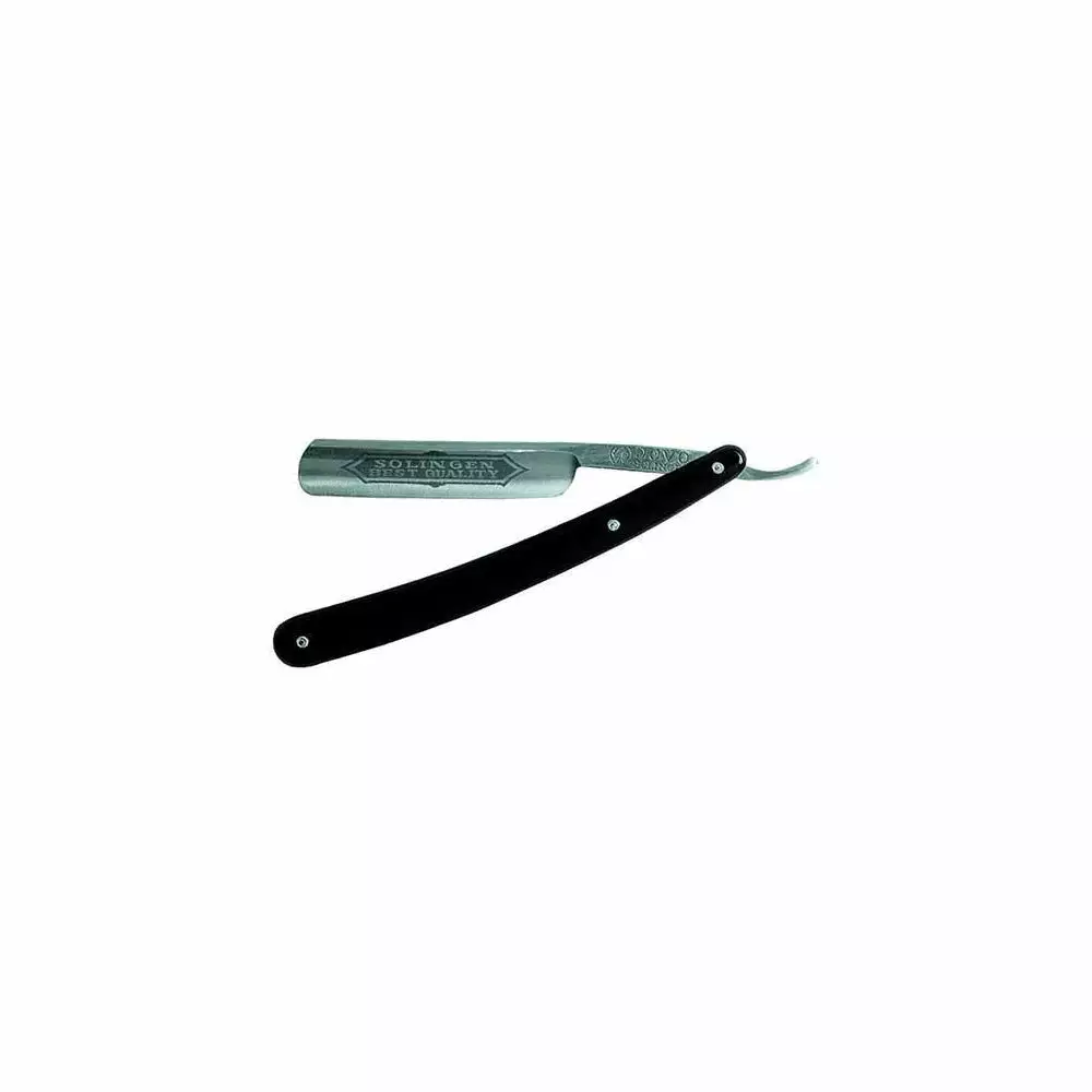 In keeping with its timeless, classic feel this blade is etched with an understated Solingen logo. The black handle of this razor is made of acrylic glass, a thermoplastic, that makes it both sleek and simple.