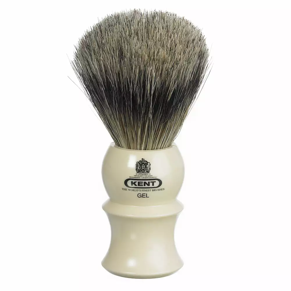 The Kent Blended Pure Bristle Gel Shaving Brush features genuine “badger effect” blended bristles and an ivory-colored handle. This shaving brush is ideal for use with shaving gels. All Kent Brushes are made in England and have a 1 year manufacturer warranty.
