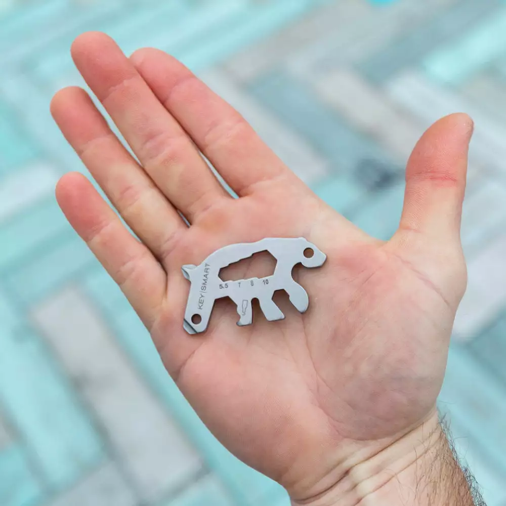 The KeySmart AllTul Bear Keychain Multi-tool is a stainless steel multi-tool that packs several essential functions into a compact, easy to carry bear.