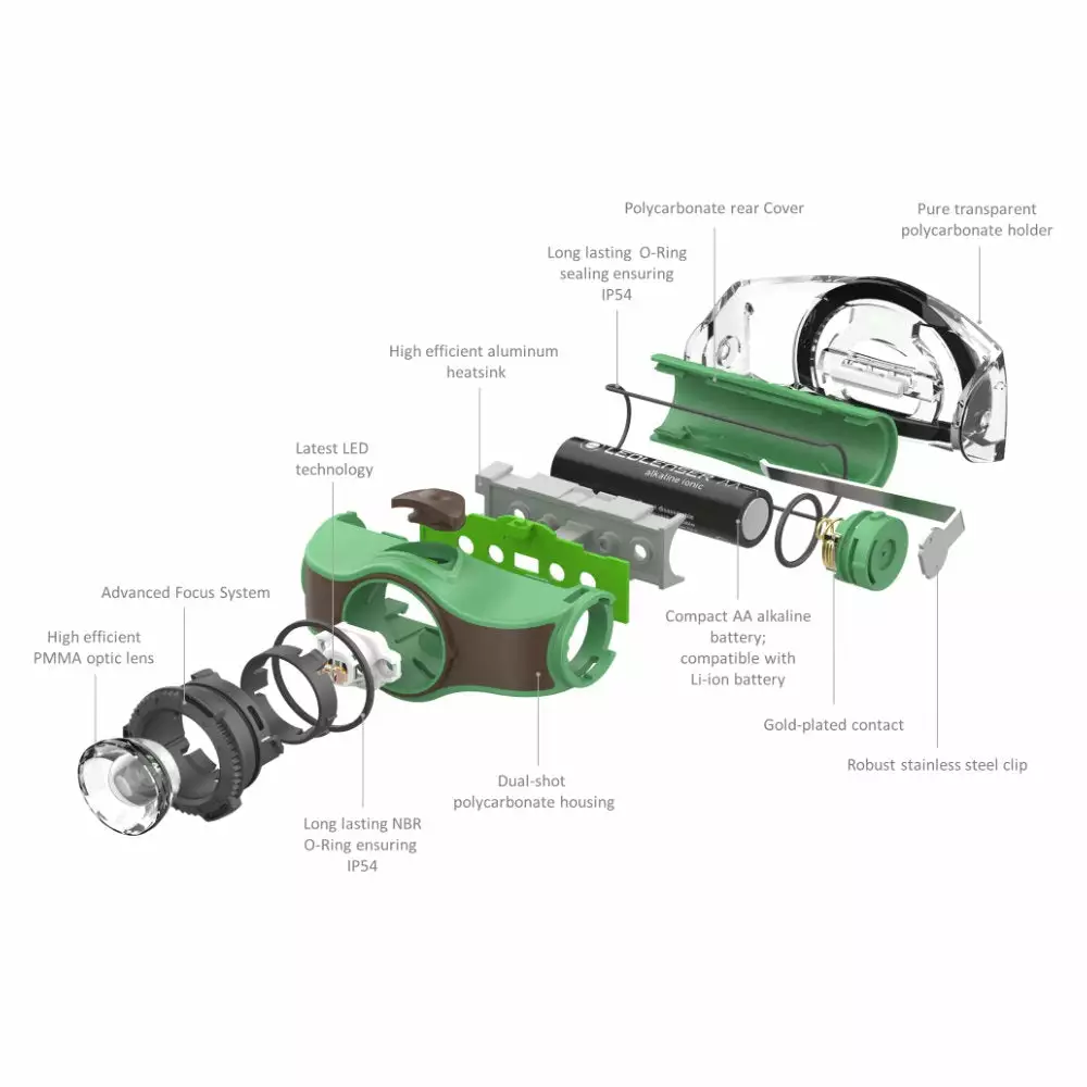 The MH4’s LED Lenser Advance Focus System provides an easy, intuitive transition from homogeneous low beam to focused high beam. Operating on just 1 standard AA battery, this light has 4.5 hours of run time on high and 35 hours on low. This lightweight headlamp puts out 200 lumens of bright, white light giving you a beam range of over 425 feet.