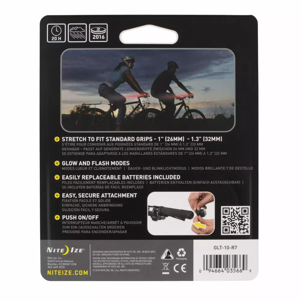 The GripLit LED Handlebar Grip Lights – Red by Nite Ize are fabulous little lights with stretchy rubber grips that slide securely over the ends of most handlebars. With just a click of the button, the bright, long-lasting, battery-powered LED in its weather resistant casing will signal your presence rain or shine – day or night! GripLits have easily replaceable, long lasting batteries for endless fun and visibility on all your nighttime adventures. With GripLit LED Handlebar Lights, you can ride confidently into the night, knowing you have eye-catching side visibility.
