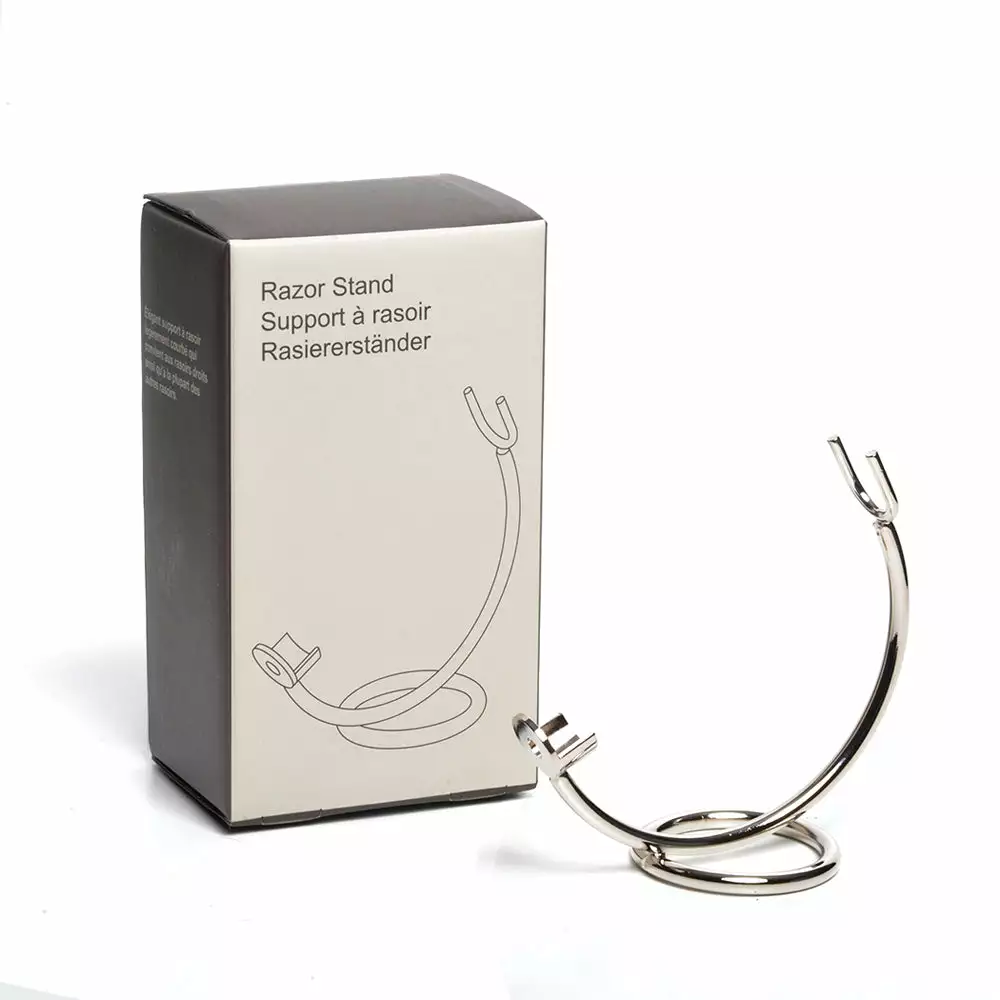 The Pure Badge Curved Stand is a great stand to hold any straight razor. Its beautiful chrome finish will add a nice flourish to your bathroom counter, while allowing your razor to dry properly between uses.