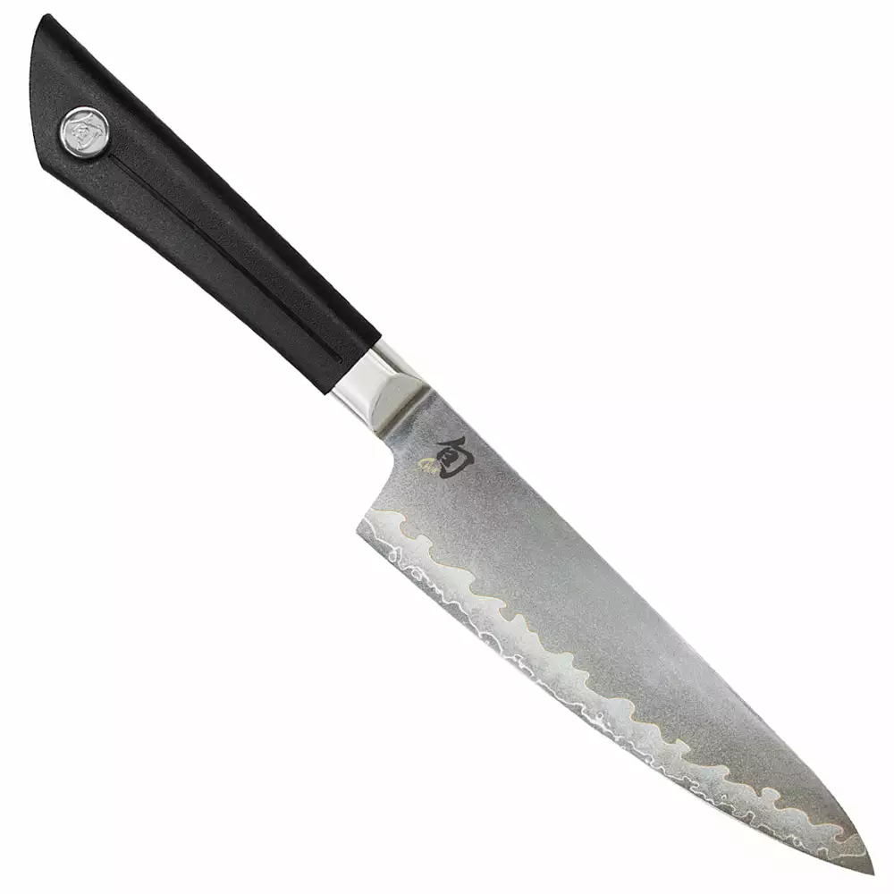 The Shun Sora 6-inch Chef’s Knife is a lightweight, very maneuverable kitchen tool. This 6″ knife is a nimble blade that’s a nice alternative to the traditional 8″ Chef’s for smaller tasks. The most versatile knife in any block, the Chef’s knife is an all-purpose blade that’s the perfect length for slicing, dicing, chopping and mincing small and medium-sized foods – from strawberries to onions and eggplants.