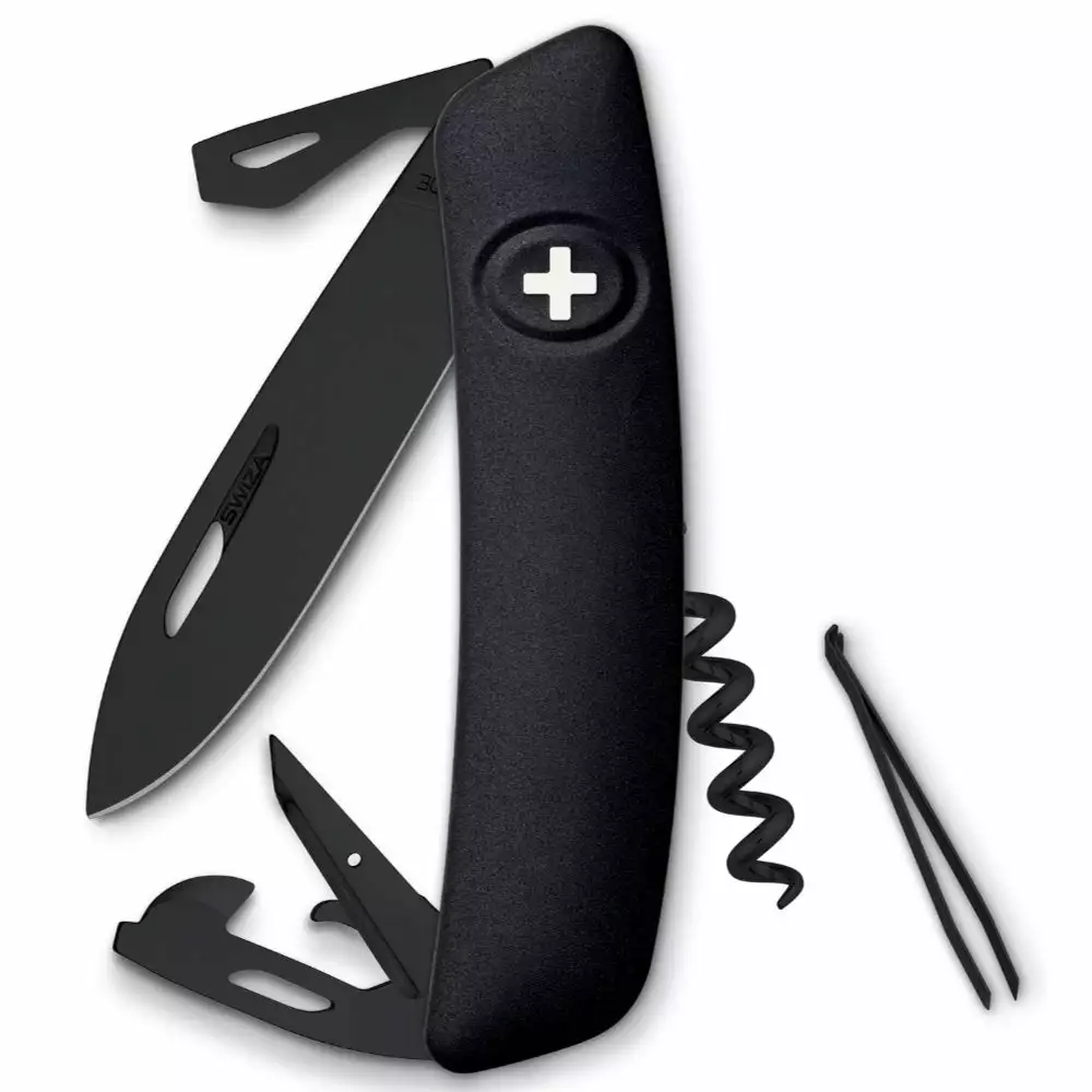 Swiza D03 All Black Swiss Knife Features: