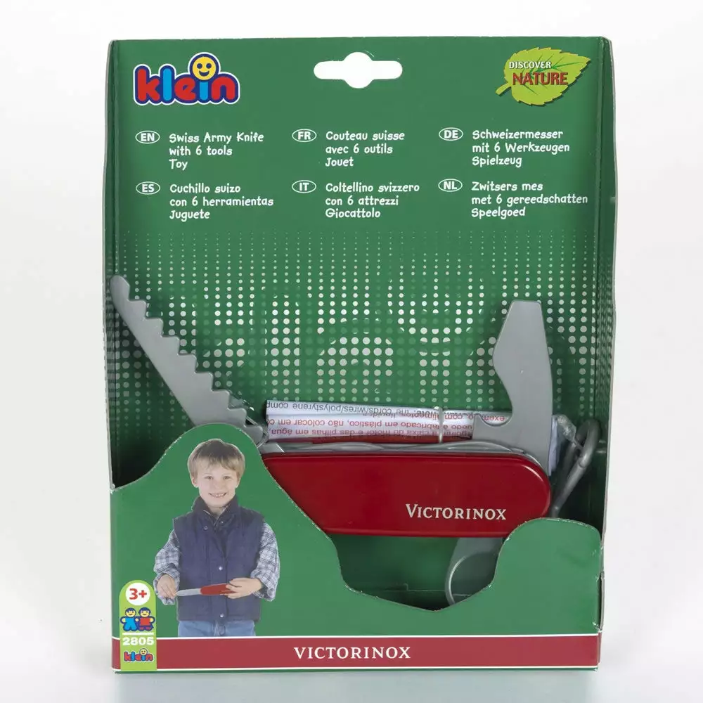 Many children admire a Swiss Army knife belonging to an older family member. The Swiss Army Bambino allows them to play safely along with the grown-ups. This colorful toy Swiss Army Knife features six plastic tools.