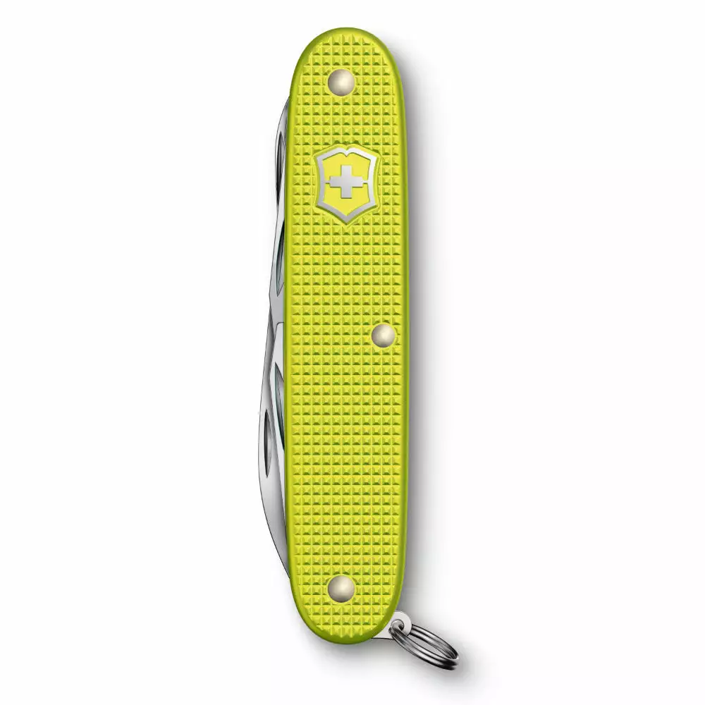 The 2023 Electric Yellow Pioneer X Alox Limited Edition Swiss Army Knife by Victorinox is the 9th Pioneer in a series of limited edition Alox pieces launched in 2015, featuring a new color each year. The Alox Pioneer has a slim profile weighing a mere 3.25 ounces.