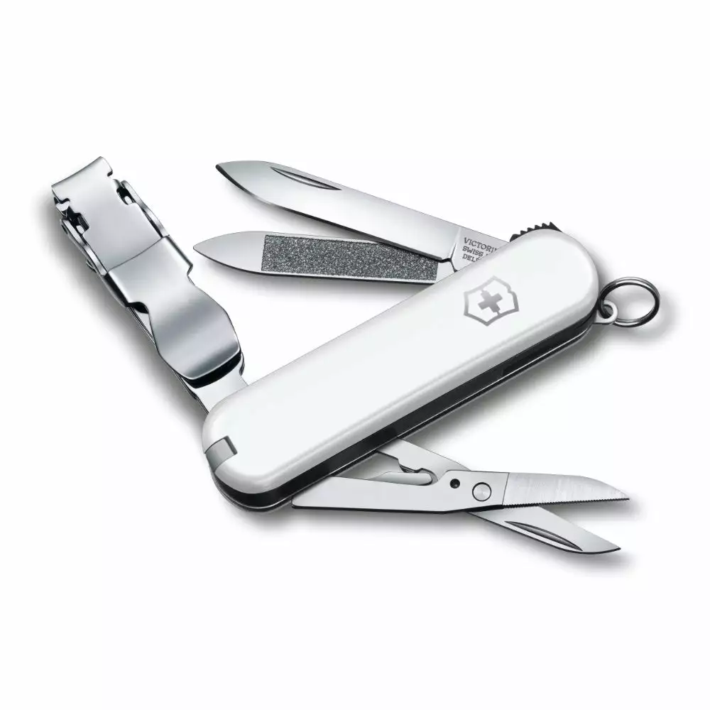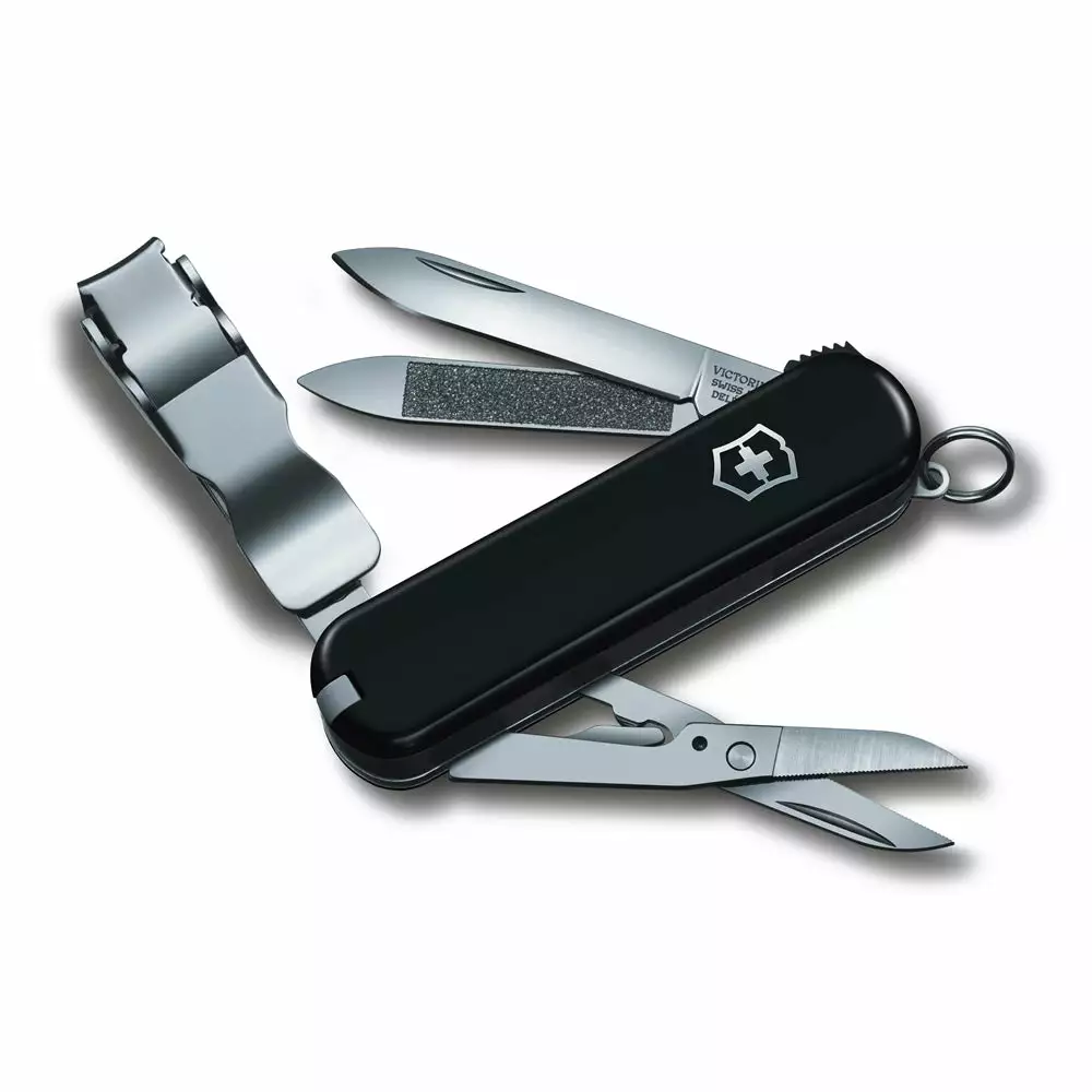 The Nail Clip 580 Swiss Army Knife, part of the Victorinox Delemont Collection, features ingenious, compact folding nail clippers that deploy with simple flip, a 1.75-inch knife blade, and 5 other implements to keep everything you need at hand. The lever-designed scissors have serrated edges that won’t dull.