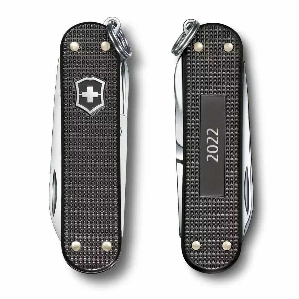 The back panel of this limited edition Classic SD is engraved with the year, 2022, and the tool is housed in a handsome presentation gift box featuring the Victorinox logo.