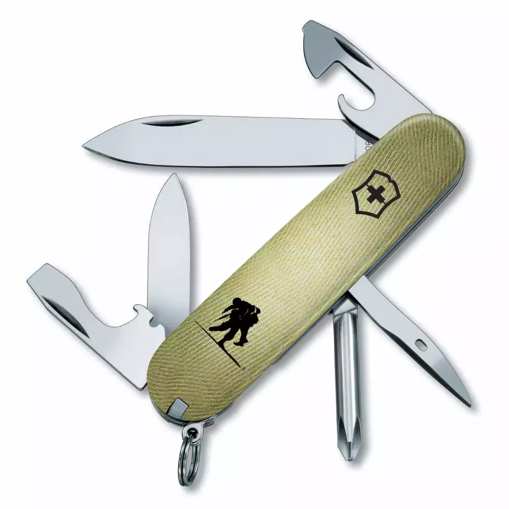 The Wounded Warrior Project Sand Tinker Swiss Army Knife by Victorinox is a special edition Tinker created to support Wounded Warrior Project (WWP). This unique tribute to the Wounded Warrior Project packs in 12 essential tools and features the WWP’s logo as well as a sand-colored background.
