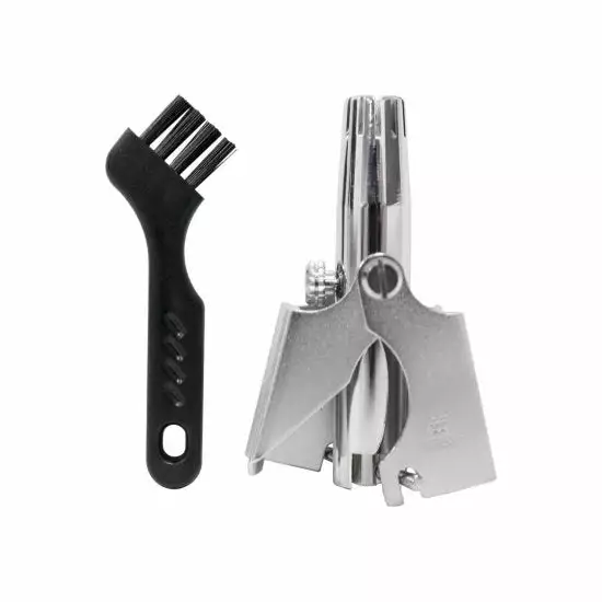 This trimmer may be operated with one hand. A brush is included for easily cleaning the cutting slots, and the trimmer can be dismantled for cleaning.